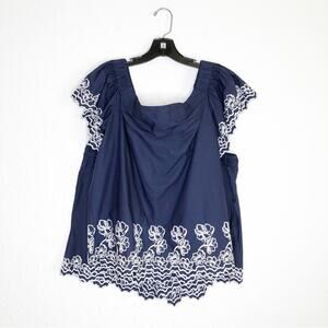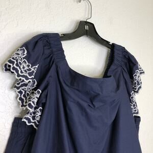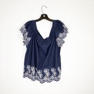 Draper James navy blue white floral embroidered top and short set Extra Large XL