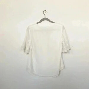 Draper James silk size 2 white blouse. Has adorable eyelet flutter sleeves and classic white blouse. Excellent used condition