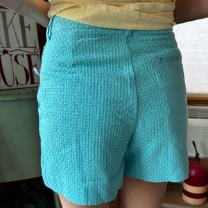Fresh and feminine size 8, NEW with tag. these Draper James Woman Shorts feature a textured aqua blue fabric that adds a touch of elegance to your casual wardrobe. Designed with a tailored fit, they sit comfortably at the waist and include practical belt loops and side pockets. Perfect for warm-weather outings, these versatile shorts effortlessly combine style and comfort.”