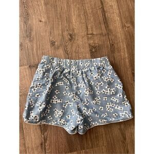 Draper James x Lands End Floral Shorts. Blue with white flower print. Elastic waist. Front pockets. 100% cotton, made in India.