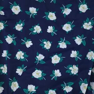 This stylish one piece swimsuit from the Draper James x Lands' End collaboration is the perfect addition to any beach wardrobe. The swimsuit features UPF 50+ for ultimate sun protection, a soft cup bra for comfort, wide straps for support, and a navy blue base with white magnolia floral pattern for a classic and timeless look. Fully lined for coverage, this swimsuit is sure to make a statement this summer. Excellent preowned condition.