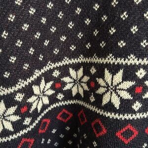 Darn baby blue with red white fair isle snowflake print. Size is M/L on tags but its a generous cut as its a poncho