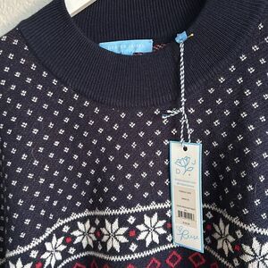 Draper JamesNassau Navy Multi Knit Sweater Fairsle Cape NWT size L