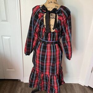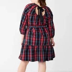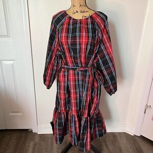 This listing is for a NWT's Draper James Bow Back Dress in size XXL in black/red plaid. The dress is long sleeve and comes with the matching belt.
