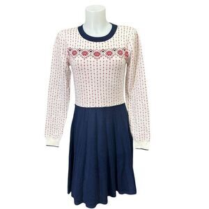 Draper James Wool Blend Fair Isle Knit Fit Flare LS Sweater Dress sz M NEW
