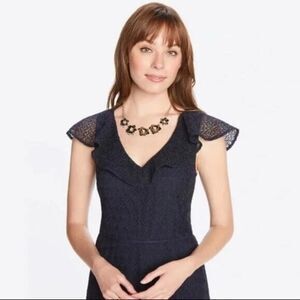 Draper James Navy Midi Dress Heart Lace and Flutter Sleeve Detail