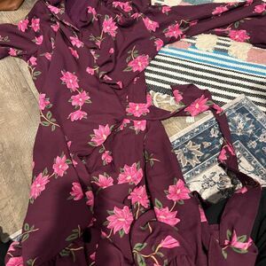 Draper James RSVP Ruffle Wrap Midi Floral Plum Lined Dress Size XXL