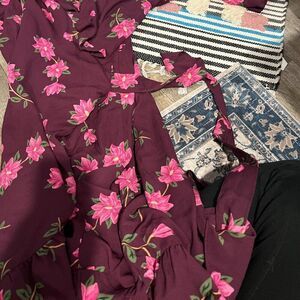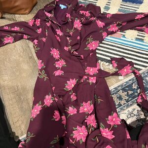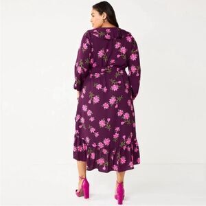 Draper James RSVP Ruffle Wrap Midi Floral Plum Dress Size XXL