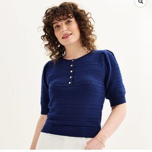Draper James RSVP knit shorts puffy sleeves gold buttons