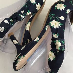 Draper James Denim Willow Slingback Heels Navy Floral Magnolia Shoes Size 9