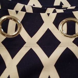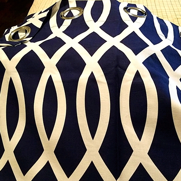 Four panels of beautiful navy and white draperies 50'x 84'. Never been used.