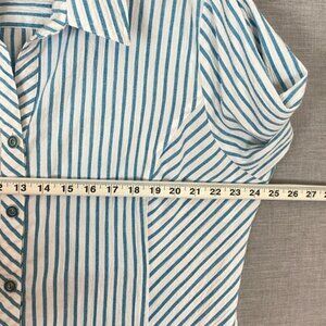 Drapers & Damon Top Womens 2X Button Up Roll Tab Sleeves Striped Blue Textured