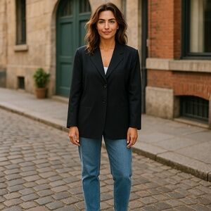 Draper’s & Damon’s silk blazer, black silk jacket, two-button blazer, classic women’s blazer, minimalist blazer, vintage silk outerwear, career wear, lightweight silk jacket