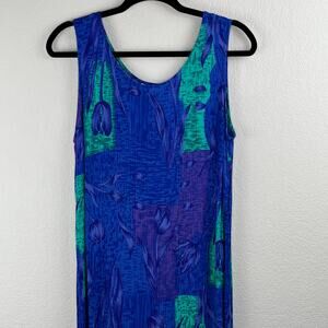Drapers & Damons Blue Multi Crinkle Floral Sleeveless Midi Shift Dress Plus 14W
