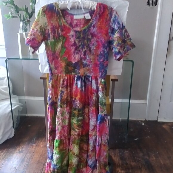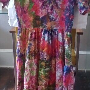 Drapers & Damons Smocked Bodice Midi Maxi Dress Purple Pink Green washed-look sz PS