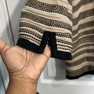 Drapers & Damon’s Button Front Sweater - Size 1x - Brown, Black & White Striped PTP: 23.5”