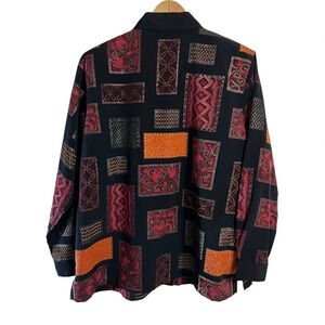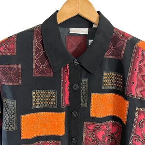 Draper’s & Damon’s Button Up Shirt 1X Multi Patterned Shiny Retro Vintage Formal