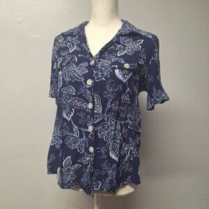 Drapers & Damons Crepe Shirt Blue Blouse Button Down Floral Womens Medium
