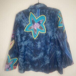 Drapers & Damons Floral Embroidered Jacket Womens Size L Lined Button Down Long