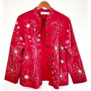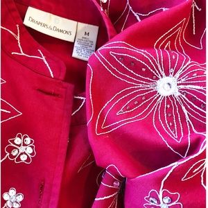 Drapers & Damons Fuchsia Pink Blazer with White Embroidery & Sequin details. Low mandarin collar with stitch detail & decorative flat shank buttons. CUTE FUN blazer - roll up the sleeves & pair it with your favorite pair of jeans - rolled up with cute little flats & a cross body bag to finish the look!! ❤️❤️❤️ Pre-loved GUC.