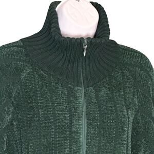 Draper’s & Damon’s Green Chenille Zip Cardigan Ribbed Trim Pockets Cottage Sz S