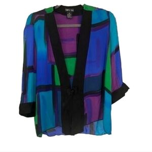 Drapers & Damon's Kimono Jacket Women's Medium Color Block Blouse Shirt Jacket