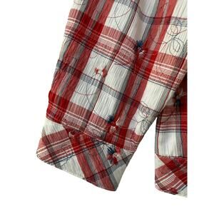 Drapers & Damons Lightweight jacket (lined). Fireworks type designs on plaid/gingham.