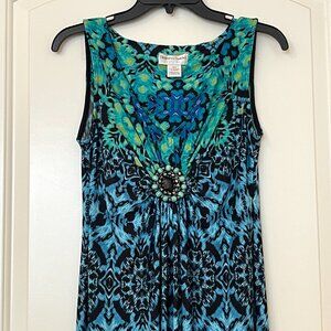 Draper's & Damon's Petites Dress 8P Bead Trim Sleeveless Maxi V Neck