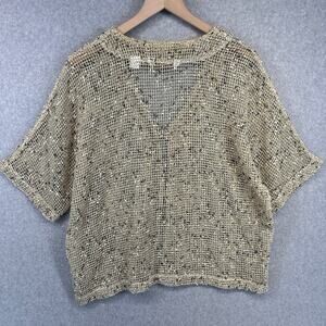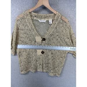 Draper's & Damon's Sweater Womens Size PL Cream Black Crochet Cardigan 2-Button