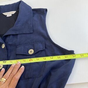 Drapers & Damons Vest Large Navy Blue Utility Pockets Cinch Waist Gold Buttons