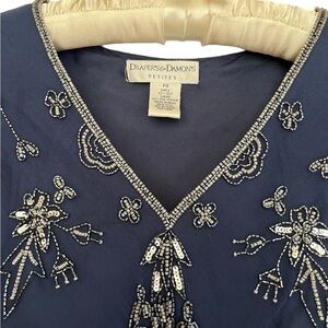 Draper’s and Damon’s Vintage Navy Blue Sheer Flowy Top Beaded Bell Sleeve Size Petite 8 RARE FIND 100% Silk Shell 100% Polyester Lining