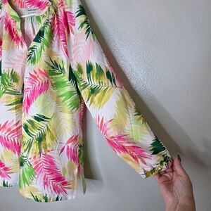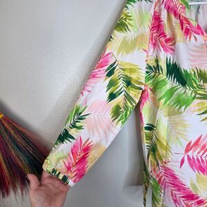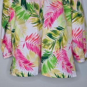 Draper's & Damon's White & Bright Multi Colored Tropical Print Silky Blouse Lrg