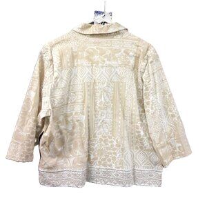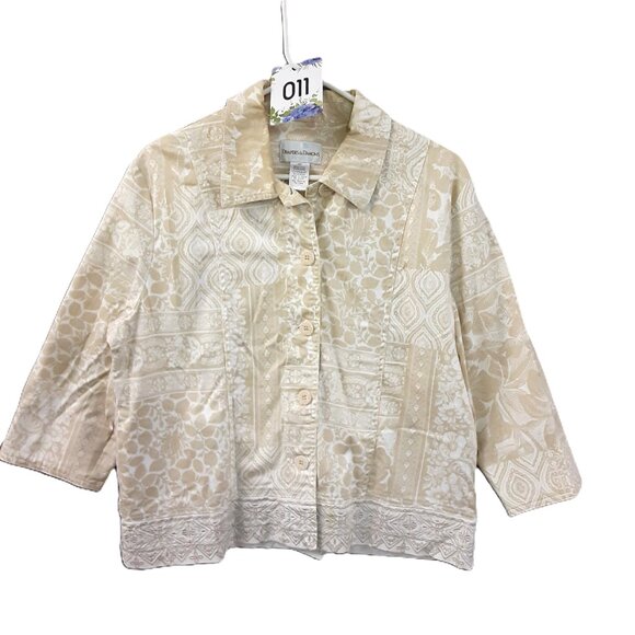 Drapers & Damons Woman's Top Size 14P, Pockets, Beige/White, Button Closure