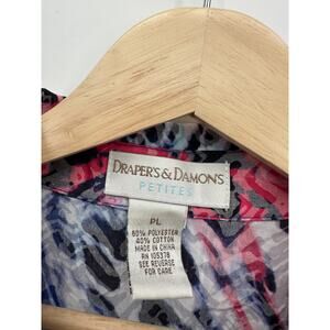 Draper's & Damon's Women's Button Front Shirt PL Ruffle Collar Burnout Printed. Boxy fit. 3/4 sleeve.