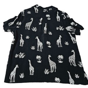 This Drapers & Damon's Womens Button Up Blouse is a stylish, multi-color garment in size XL, made from a blend of 51% acetate and 49% rayon. Adorned with an animal print featuring giraffes, it's perfect for a casual look with a touch of wild charm.