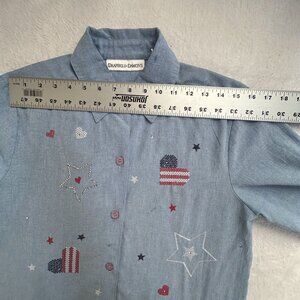 Draper's & Damon's Womens Button Up Denim Shirt Small Embroidered Patriotic Star