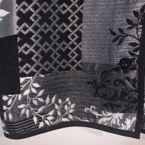 This elegant jacket features a sophisticated floral patchwork design in classic black and white tones. The perfect addition to any wardrobe, it offers versatility and style for various occasions. The jacket's design exudes timeless elegance, ensuring a chic appearance with every wear.
