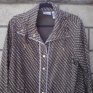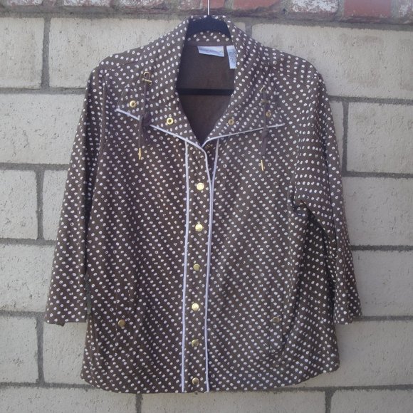 Drapers & Damons Women's Jacket Brown with white polka dot Snap up Front Large