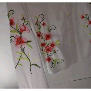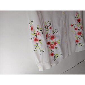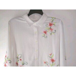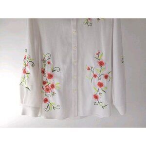 Draper's &Damon's Women's Size XL White Embroidered Button Up Long Sleeve Top