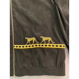Drapers & Damons XL Black Stretch Jacket With Yellow Cheetah Embroidery & Gold Z