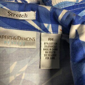 Drapers and Damons Jacket Womens Size Medium Petite Blue Gold Blazer Tropical