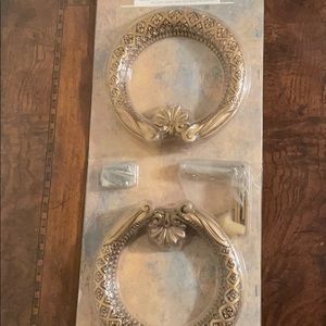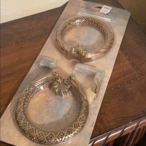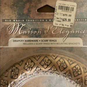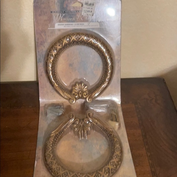 Gilded scalloped top old world style drapery rings that come with mounting hardware.