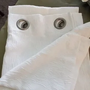 52 " w x 82" l ( measuring from center of grommet) The header is 4" in length. polyester fabric in an off white, textured curtain panel.