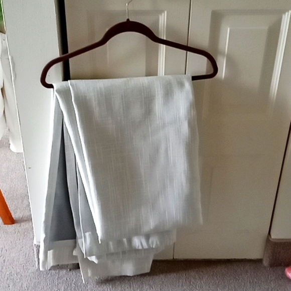 Donna karan. 2 panels ea 85 x 52. oatmeal in color with a gray backing for room darkening.