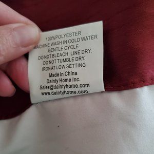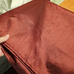 These are beautiful pair of drapes in a rich, burgundy color (the camera is making them look red - but they are not) . 84" in length and 36" wide. They are lined and can be washed in the machine in cold water on gentle cycle. They are 100% polyester, but look like silk. The fabric has a sheen to it. The grommets are a brushed silver. They are really elegant.