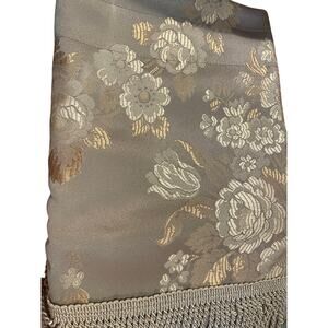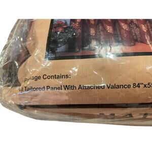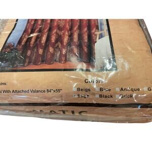 Drapes Curtains three Jacquard Panels with attached valances fringed by Matic. 3 Panels 84x55 Sage embossed floral pattern. Polyester. Rod sleeve. New in packaging.
