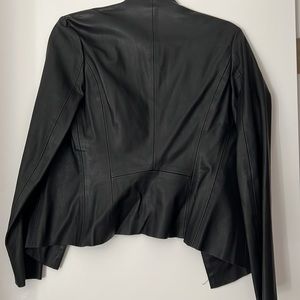 Gorgeous tailored leather jacket with drapey front detail and raw edges