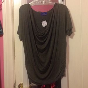 A Drapey top with bottom hem side ruching. Size Small. Received as a gift, never worn. Feel free to negotiate