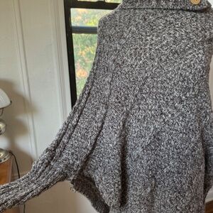 This top has sleeves and turtleneck but drapes nicely. Made of acrylic. Small pull on the right shown in photos.