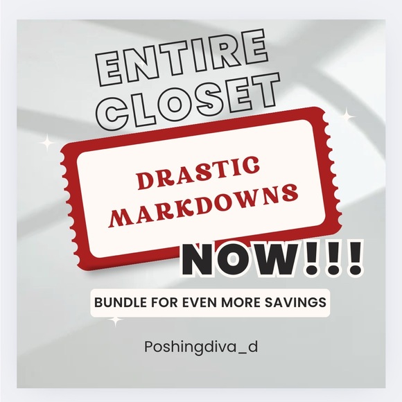 Drastic markdowns on the entire closet! Save even more by bundling 3 or more items for an additional 25% off!